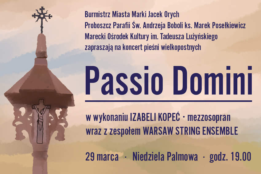 Koncert odbędzie się 29 marca w Kościele pod wezwaniem św. Andrzeja Boboli w Strudze. W programie dzieła dawnych mistrzów oraz kompozycje twórców współczesnych, ukazujące bogactwo pasyjnej ekspresji muzycznej, m.in. utwory Johanna Sebastiana Bacha, Antonio Vivaldiego, Georga Friedricha Händla, Giovanniego Battisty Pergolesiego, Alessandro Stradelli, Josepha Haydna, Gabriela Faure, Pawła Pałłasza i Michała Lorenca. Partie solowe zaśpiewa Izabela Kopeć, której pełen emocji głos w przejmujący sposób oddaje duchową głębię prezentowanych utworów. Artystce towarzyszyć będzie Warsaw String Ensemble, zapewniając kameralne brzmienie i wysoki poziom artystyczny wydarzenia.